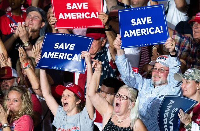 American “patriots” who love the flag and our country vs. immigrants, LGBTQ+ people, minorities, Muslims, liberals, etc.