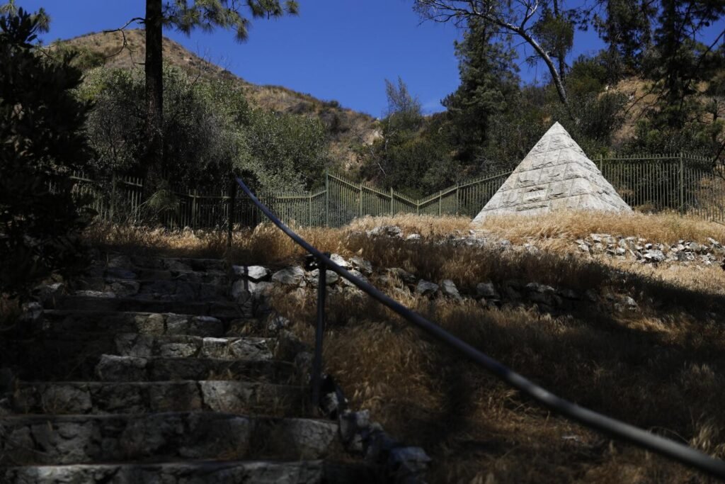 One of the most interesting things to do when paying a visit to Miradero today is to follow the 1/2 mile dirt trail to The Pyramid (below). Here, you will find Mr. Brand, his wife Mary Louise, her brother Nathaniel Dryden who designed Miradero, and their beloved family dogs buried.